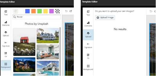Images can be uploaded from your device as well as there being a number of stock images available within background of the editor.