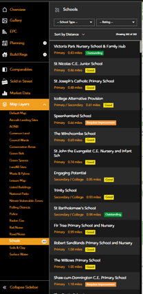 This map allows you to see all schools in the local area with valuable information such as: distance to property, Ofsted rating, school type and much more.