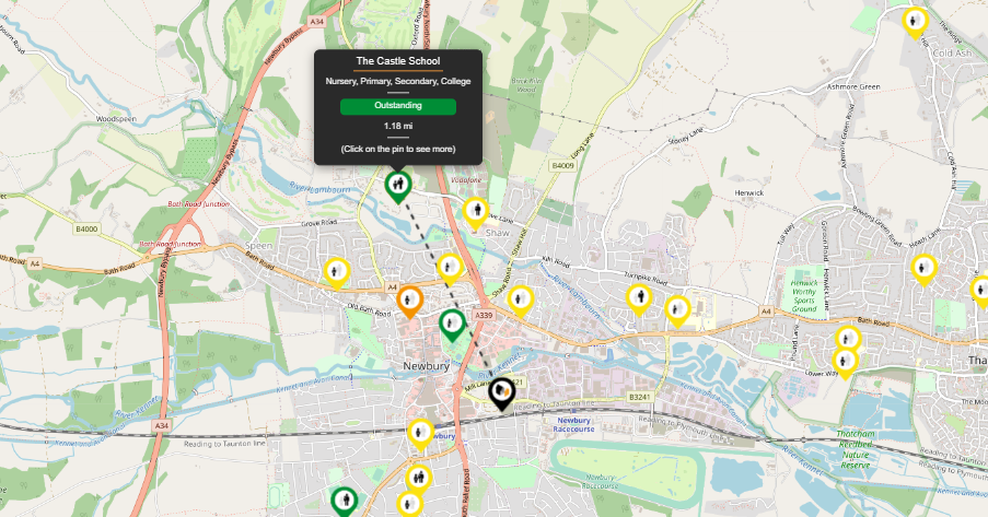 Our schools map gives you the essentials on any UK school. Check out the helpful key in the bottom toolbar to help you navigate.