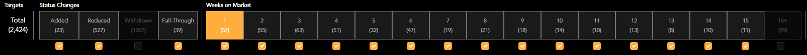 De-selecting Withdrawn or 16+ weeks will re-select the other targets.